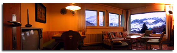 Die helle 3 1/2-Zimmer-Ferienwohnung ist ca. 70m2 gross, mit Blick auf Dorf